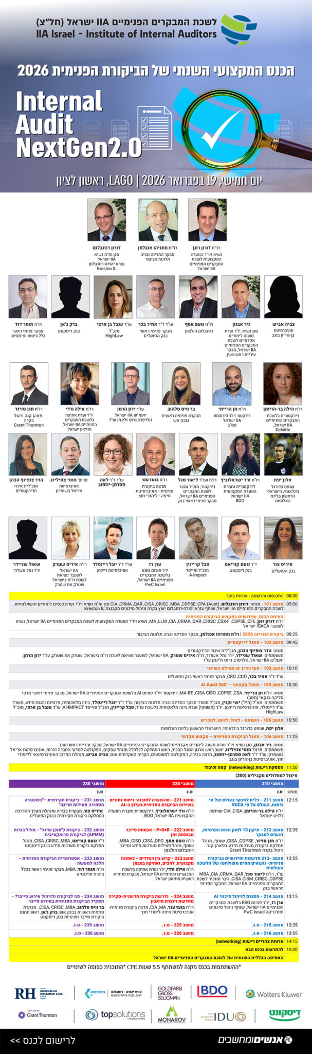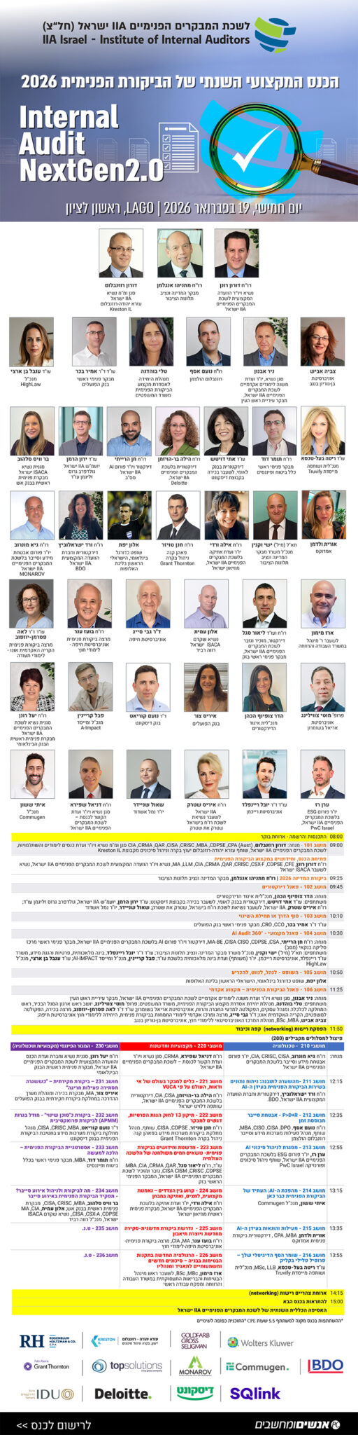 לשכת המבקרים הפנימיים בישראל הינה הגוף היחיד והבלעדי בישראל המוכר על ידי ה-IIA והוא בלבד נציגו המוסמך בישראל. לשכת המבקרים הפנימיים העולמית, המונה כ-266 אלף חברים ב- 180 מדינות, היא הגוף המוביל בתחום זה בעולם כולו ופועלת באמצעות לשכות מבקרים פנימיים ברחבי העולם. ה-IIA אחראית על מסגרת הנהלים המקצועיים הבינלאומית המכילה את הסטנדרטים